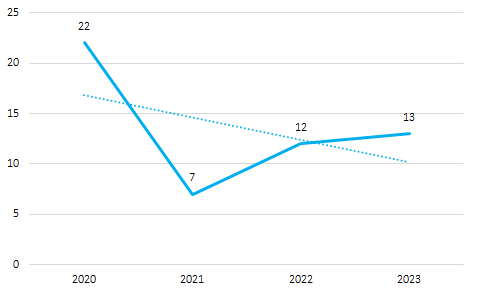 Figura 1. Cantidad de estudiantes ingresantes con discapacidad. FHCSyCG, 2020-2023.